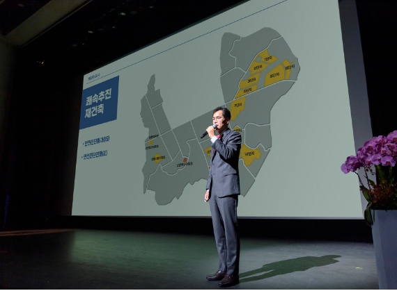 ![]() 올해 1월 신년인사회에서 재건축 정비사업 설명중인 이기재 양천구청장 |