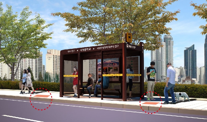 이번에 설치된 바닥 표시물은 버스정류장 입구 바닥에 다음 정류장까지의 거리와 도보 소요시간, 칼로리 소비량 등 정보를 제공해 일상생활 속 걷기 실천을 독려하고자 설치됐다.