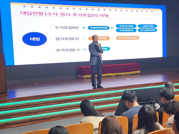 김종승 장학관은 연수회에서 대학별 전형 변화, 대학별 학교폭력 입시 반영, 의대 정원 증원, 무전공 선발 확대 등 입시 환경 변화와 그에 따른 지원 전략을 중심으로 단위 학교별 학생 맞춤형 진학 협업을 위한 진학 정보를 제공한다.