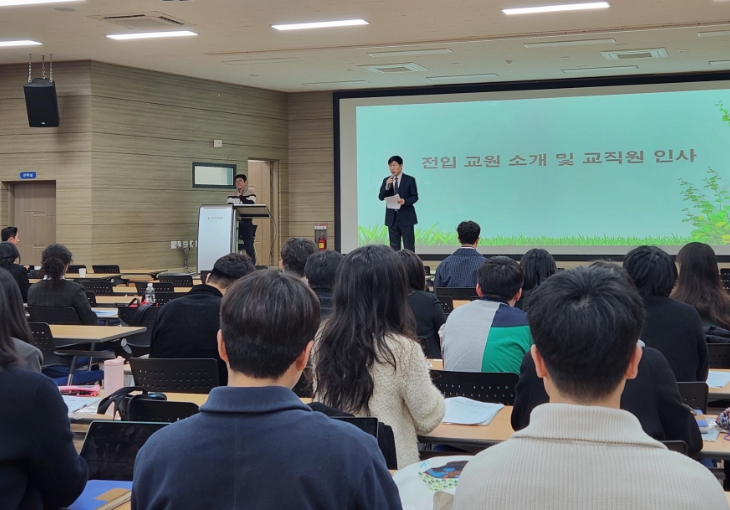 첫날인 21일은 신규 및 전입교사 소개, 교직원 인사, 전체 일정 안내한 후, 교실 현장에서의 수업 모습, 경쟁력 높은 학생부 운영, 실력보다 협력이 우선하는 학교문화 등 좋은 학교 만들기에 대해 김월룡 교장이 본교 교직원을 대상으로 설명하는 시간을 가졌다.
