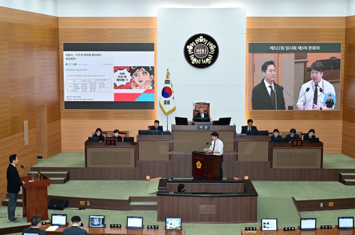 ![]() 시정질문 중인 문성호 서울시의원, 오세훈 서울시장 |