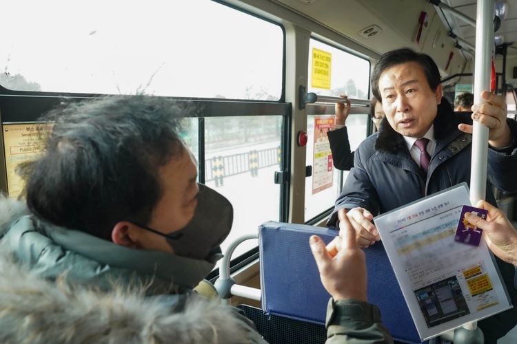 ![]() 개편된 시내버스를 탑승해 시민 의견을 청취하는 박홍률 목포시장 |