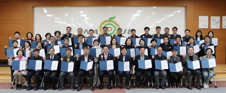 ![]() 윤병태 나주시장과 시 간부공무원 42명이 청렴도 1등급 달성을 위한 ‘반부패 청렴서약’에 참여하고 있다. |