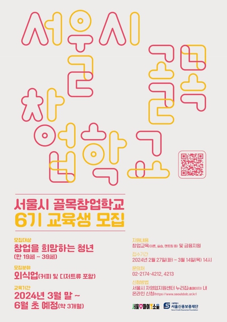 ‘골목창업학교’는 외식업 및 식음료, 베이커리 분야 창업을 희망하는 19세~39세 서울 청년이라면 누구나 지원할 수 있다. 최종 선발된 교육생은 3월부터 11주간 주 4회, 전문 강사의 '이론·실습 교육', '멘토링', '창업자금 융자' 및 '사후관리'에 전 과정에 이르는 현장 중심의 밀도 높은 종합 창업 교육을 받는다.
