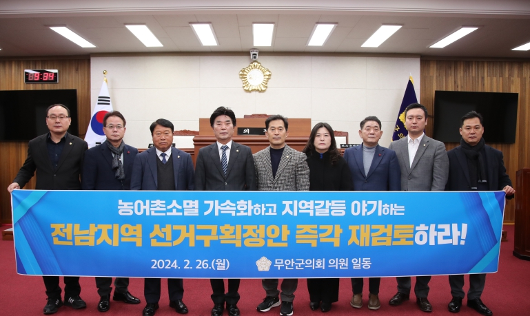 ![]() 무안군의회, “전남지역 선거구획정안 즉각 재검토” 촉구 |