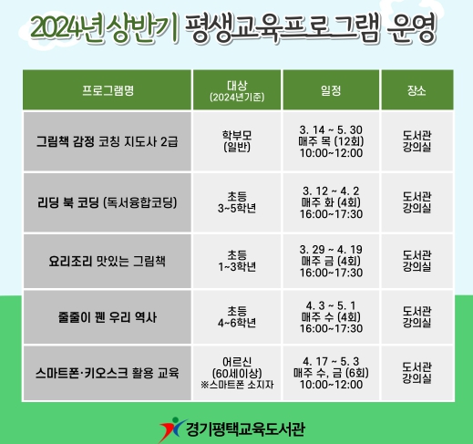 ![]() ‘2024년도 상반기 평생교육프로그램 운영’이미지 |