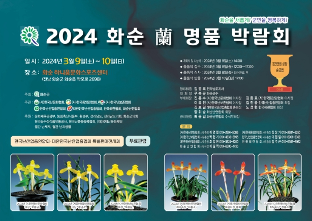 군 관계자는 “이번 박람회를 통해 한국 자생란의 보고 화순의 난 가치와 반려 식물로써의 난을 알리고, 우리 화순이 한국 난 산업 시장 개척에 앞장서는 계기가 되길 기대한다”라고 말했다.