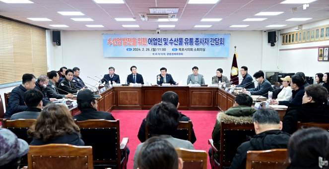 김관호 위원장은 “오늘 간담회를 통해 수산업에 종사하시는 분들에게 더 가까이 다가가는 계기가 된 거 같다”며, “위원회에서도 목포시와 협력하여 이를 해결하기 위해 노력하겠다”라고 말했다.