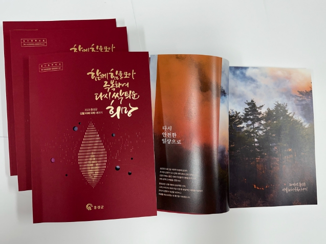 지난해 4월 2일부터 3일간 서부면 일대에서 발생한 산불은 충남 역대 최대 규모로, 1,337ha 산림이 소실되고 53세대 91명의 이재민이 발생했다. 이에 홍성군은 향후 산불 및 재난 대응을 위한 지침서인 ‘산불 백서’를 발간했다.