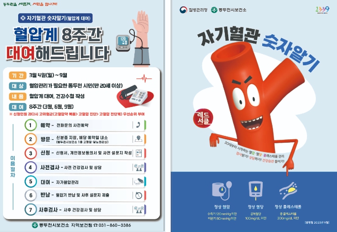 ![]() 동두천시, ‘자기혈관 숫자 알기(혈압계 무료 대여) 사업’ 실시 |
