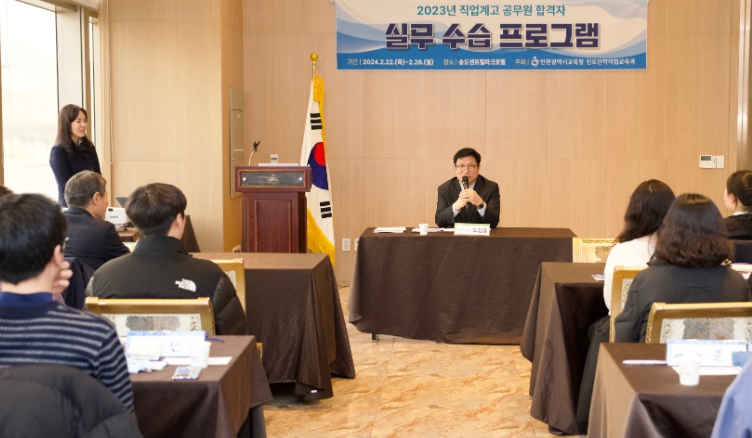인천시교육청은 22일부터 2023년도 공무원 시험에 합격한 직업계고 졸업생을 대상으로 새내기 공무원에게 필요한 실무 수습 프로그램을 운영했다.