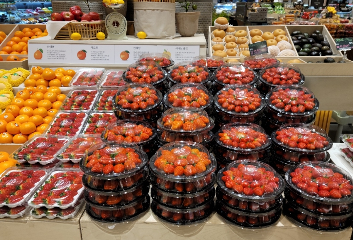 ![]() 롯데백화점 울산점 식품관에 밀양딸기 1943이 진열되어 있다. |