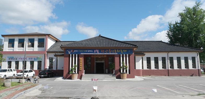문화관 앞마당에는 일본군 위안부 피해 할머니들의 인권과 명예회복, 한반도 평화를 염원하는 평화의 소녀상이 맨발로 평화의 상징인 비둘기를 두 손에 든 모습으로 서 있다.
