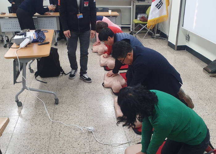 이번 교육은 뇌혈관 및 심장질환에 관한 주요 예방 수칙 및 구조자 면책 규정 등의 이론 교육과 실습 교육을 병행하여 1시간 가량 진행됐다.
