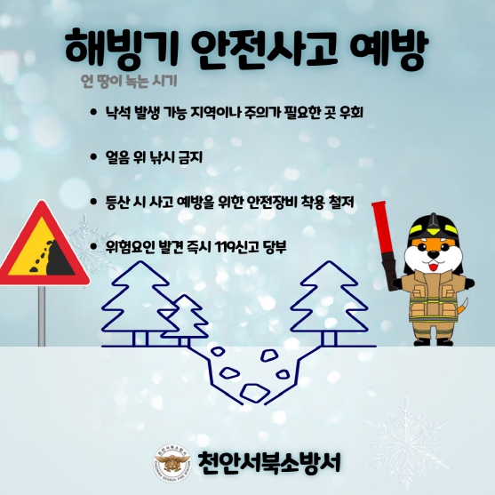 ![]() 천안서북소방서, 해빙기 안전사고 각별한 주의 필요해 |