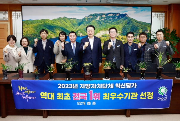 한편 화순군은 지난 2022년 혁신평가에서는 우수등급(82개 군 중 6위)을 차지한 바 있으며, 2022 정부합동평가 전남도 내 1위, 2023 민원서비스 종합평가에서 최우수기관(가 등급) 선정됐고, 대한민국축제콘텐츠대상에서 화순 고인돌축제가 축제·관광 부문 대상을 받는 등 잇따른 수상 소식을 전하고 있다.
