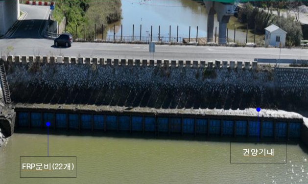 시설물(배수갑문) 정밀안전진단 결과 해측문비 수밀상태 불량(누수) 등으로 내구성 및 내하력 저하가 우려되는 시급한 조치가 필요한 시설물로 종합평가결과 D등급으로 판정되어 군은 개보수사업에 대한 기본계획을 수립하여 전남도와 농림축산식품부에 지속해서 건의해 왔다.