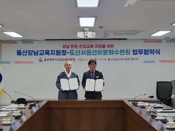 강남교육지원청은 27일 도산서원선비문화수련원(이사장 김병일)과 인성교육 지원 강화 업무협약을 했다.