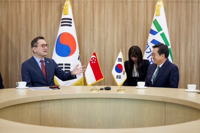 ![]() 27일 오후 경기도청 집무실에서 김동연 경기도지사와 에릭 테오(Eric Teo) 주한 싱가포르 대사가 면담을 하였다. |