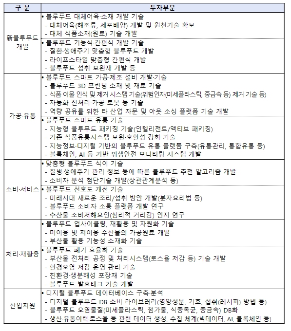 ![]() 블루푸드테크펀드 투자 분야 |