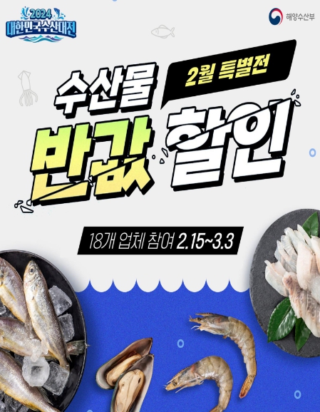 「대한민국 수산대전-2월 특별전」은 2월 15일부터 3월 3일까지 소비자들이 마트와 온라인몰에서 국산 수산식품을 구매할 때 구매 금액의 최대 50%(정부 20%+참여 업체 20~30%)를 할인 지원하는 행사이다. 이번 행사는 명태, 참조기, 고등어, 오징어, 마른 멸치 등 물가 관리 품목과 더불어 우럭, 바다장어 등 국산 수산물을 대상으로 진행하며, 행사기간 중 필요시 정부가 유통업체와 협력하여 자체 할인율을 상향하는 등 체감물가 완화를 위해 적극적으로 대응할 계획이다.