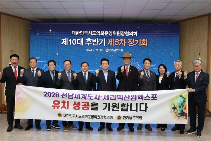 아울러 “2028전남세계도자ㆍ세라믹산업 엑스포 유치가 전남 도자산업의 세계시장 진출 및 미래형 도자산업 부가가치 창출을 도모하는 계기가 될 것으로 기대한다”며, “전국 17개 시도의회 운영위원장들께서 함께 응원해 주고 성원해 주길 부탁드린다”고 당부했다.