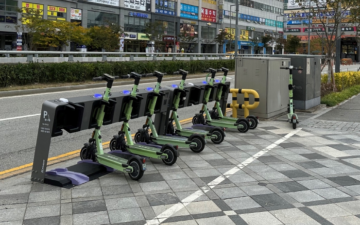 ![]() PM주차장에 주차돼 있는 공유 개인형이동장치 |