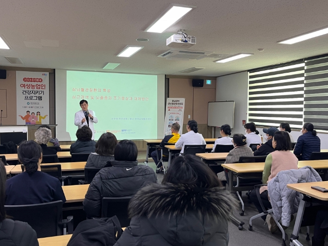 이날 강좌는 여성농업인과 건강도시 참여단 40여 명을 대상으로 천안 순천향대학교 예방의학과 황보영 교수(충청남도 심뇌혈관질환 센터장)를 초청해 진행됐다.