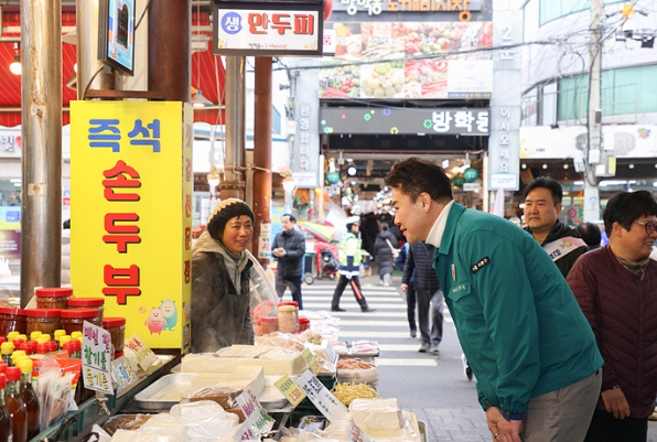 ![]() 오언석 도봉구청장이 지난 2월 5, 6일 도봉구 지역 내 전통시장을 찾아 설 성수식품을 구입한 뒤 상인과 대화를 나누고 있다. |