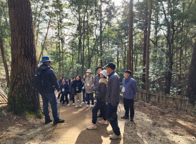 ![]() 신청자들이 주작산에서 숲 체험을 하고 있다. |