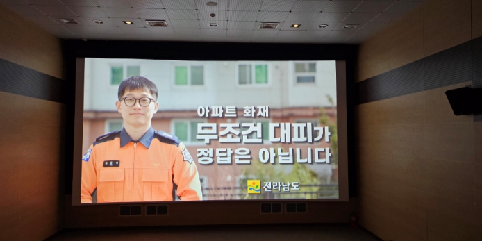 전남도는 노후 아파트가 많은 지역적 특성을 고려해 우선 도내에 운영 중인 작은영화관에서부터 대피 영상을 상영하도록 영화사와 협의해 오는 3월부터 인트로 상영을 할 방침이다.