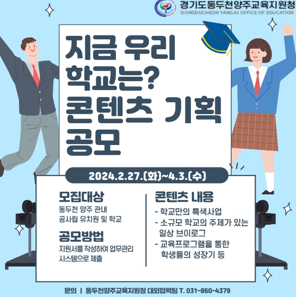 ![]() 동두천양주교육지원청, 특색있는 교육활동 홍보를 위한 '지금우리학교는' 영상 기획 공모 실시 |