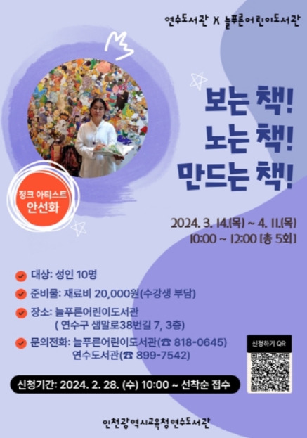 ![]() 2024년 협력네트워크 교류사업(안선화 정크아티스트와 함께하는 ‘보는 책! 노는 책! 만드는 책!’) |