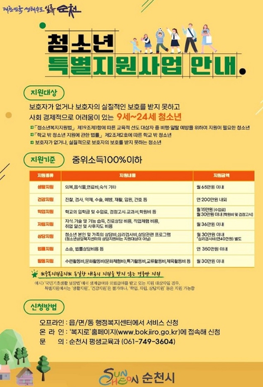 ![]() 순천시, 위기청소년 특별지원 대상자 모집 |