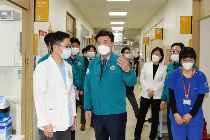 이번 방문은 의료계 집단행동과 관련, 전공의 사직서 제출 및 개원의 집단휴진 대비 비상 진료체계 운영 현황을 점검하고 상급의료기관에서 발생할 수 있는 의료공백을 대신하는 의료진들을 격려하기 위해 마련됐다.