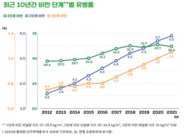 통계자료에 따르면, 최근 국내 성인 5명 중 2명은 비만에 해당하고, 이 중 ‘초고도 비만 유병률’은 최근 10년 새 3배 가까이 증가했다.