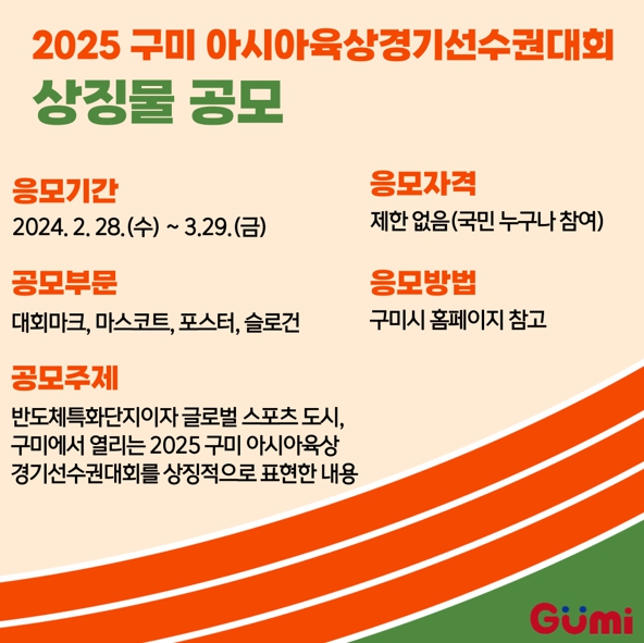 ![]() 2025 구미 아시아육상경기선수권대회 상징물 공모 |