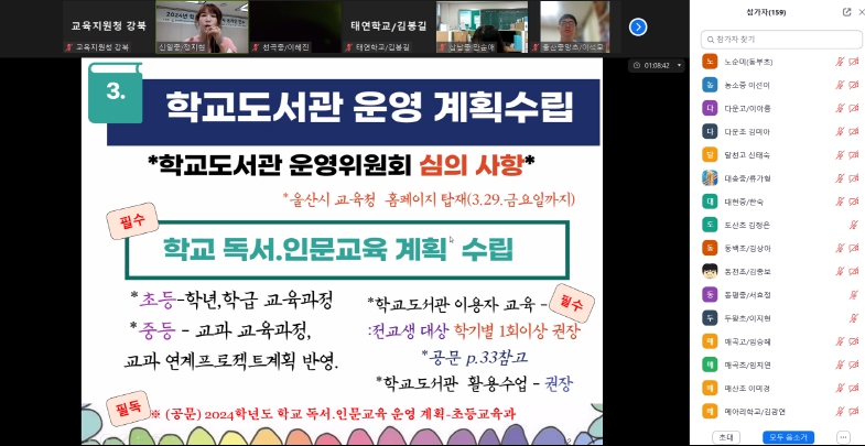 특히, 학생의 자기 주도적 독서계획 수립과 지도를 제공하는 독서로(신 DLS) 시스템의 최신 중요 안내 사항을 적용해 실무를 공유했다.