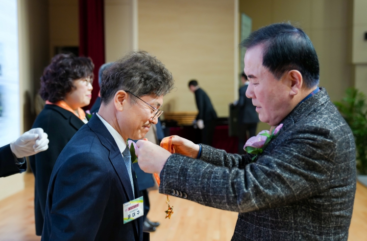 ![]() 김지철 교육감이 28일(수) 충남교육청 대강당에서 진행된 2월말 퇴임 교원 정부포상 전수식에서 퇴임 교원에게 정부포상을 전수하고 있다. |