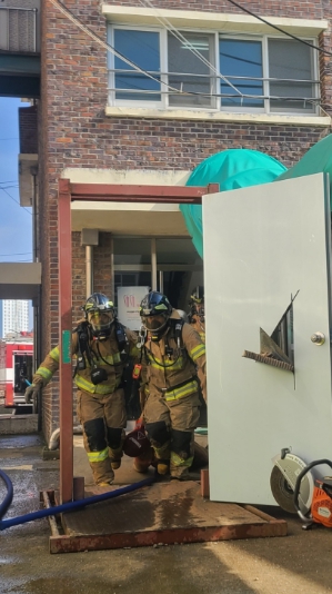 훈련 내용은 ▲방화문 개방 ▲호스를 활용한 배연활동 ▲현장 위험성 평가 ▲요구조자 안전 확보 및 인명구조 방법 숙지 ▲수관 전개 및 열화상카메라 화점탐색 ▲돌발위험 대처 및 긴급탈출 등이다.