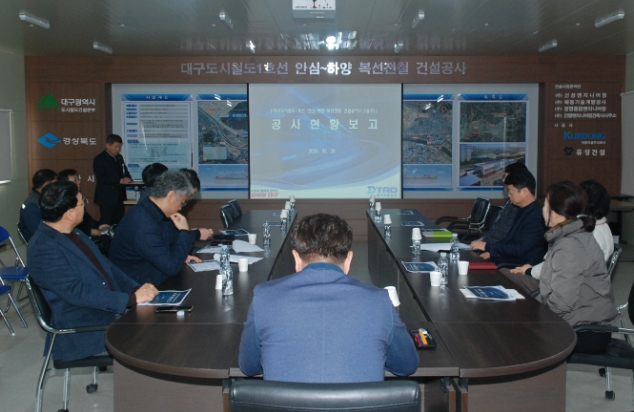 먼저, 산업건설위원회 위원들은 대구-경산권 광역교통망 확충사업의 일환으로 올해 말 개통을 목표로 진행중인 대구도시철도1호선 안심-하양 복선전철 건설공사 현장을 방문하여 관계자들로부터 사업계획, 추진상황 등을 청취한 후, 공사 현장을 둘러보며 현재까지의 공사 진행상황을 꼼꼼히 살폈고, 작업근로자들의 안전사고 유의를 당부했다.