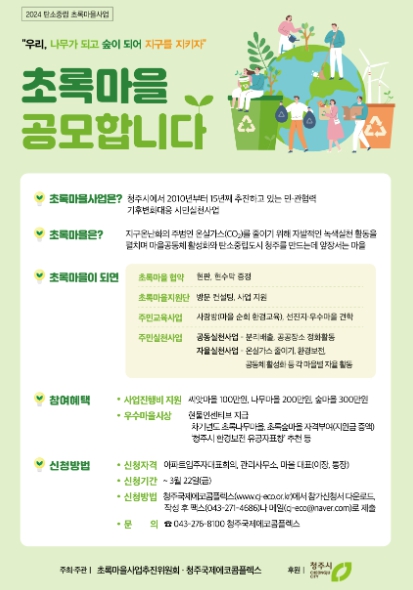![]() 청주시, 2024년‘초록마을사업’ 함께할 초록마을 공모 |