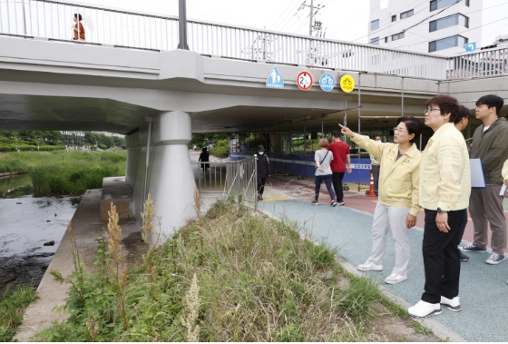![]() 지난해 6월 불광천 와산교 현장 점검 중인 김미경 은평구청장(왼쪽) |