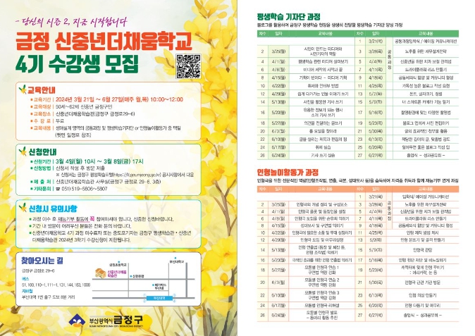 ![]() 부산 금정 신중년더채움학교 4기 수강생 모집 |