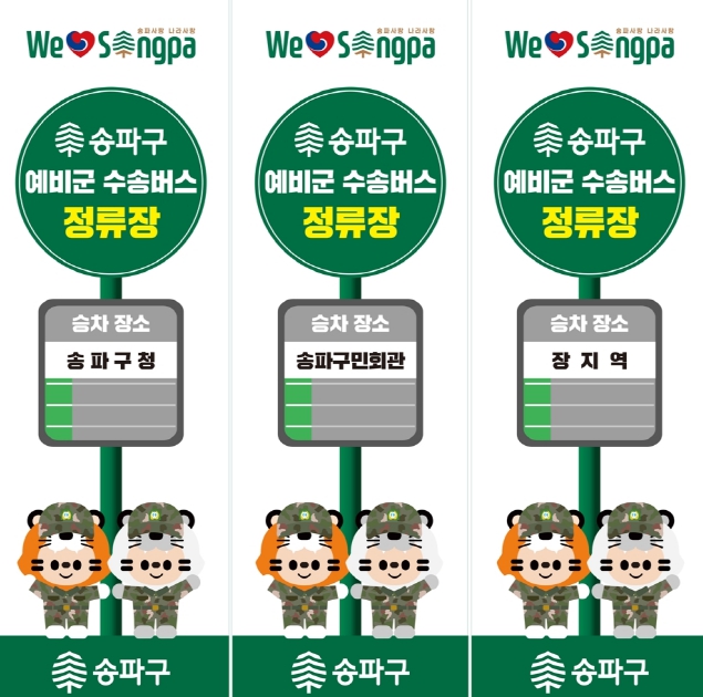 관내 예비군은 올해 첫 예비군 훈련일인 3월 4일부터 ▲송파구청 일자리센터 앞 ▲삼전동 구민회관 앞 ▲장지역 4번 출구 앞 총 3개소 정류장에서 탑승 가능하며, 훈련 후 편안한 귀가까지 지원할 계획이다.