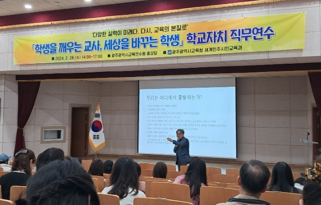 29일 시교육청에 따르면 이번 연수는 ‘다시, 교육의 본질로’라는 슬로건 아래 학교자치의 근간인 교육공동체 간의 관계 회복과 소통의 기술을 익힐 수 있도록 주안점을 뒀다. 또 학급자치의 실제적 사례 습득을 통해 새학년을 맞이하는 교사의 자치 역량 강화도 지원하고자 했다.