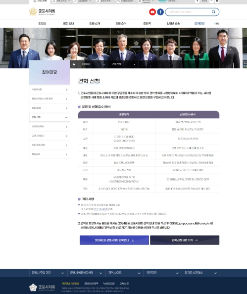 ![]() 군포시의회 누리집에 신설된 견학 신청 게시판 |
