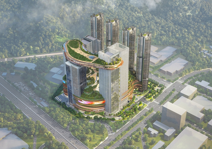 건물 상층부 스카이브릿지(높이 180m, 50층)에 설치 예정인 인피니티풀과 옥상조경 휴게시설, 도심과 청계산을 한눈에 조망할 수 있는 전망대, 호텔과 연계한 부대시설 등 도입으로 신규 관광 명소로서 지역 발전에 기여할 것이다.