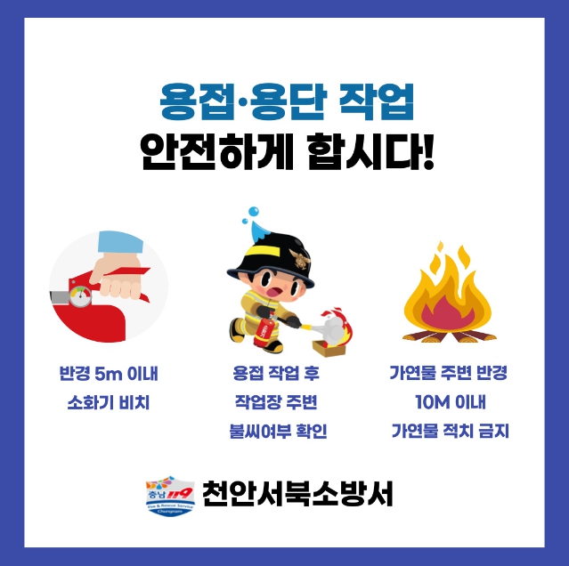 ![]() 천안서북소방서, 용접 작업 시 불티로 인한 화재 주의 |