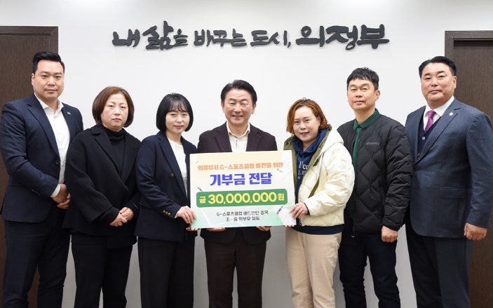 ![]() 김동근 시장이 2월 29일 시장실에서 열린 기부금 전달식에서 G-스포츠클럽 배드민턴부 학부모들과 기념사진을 찍고 있다. |